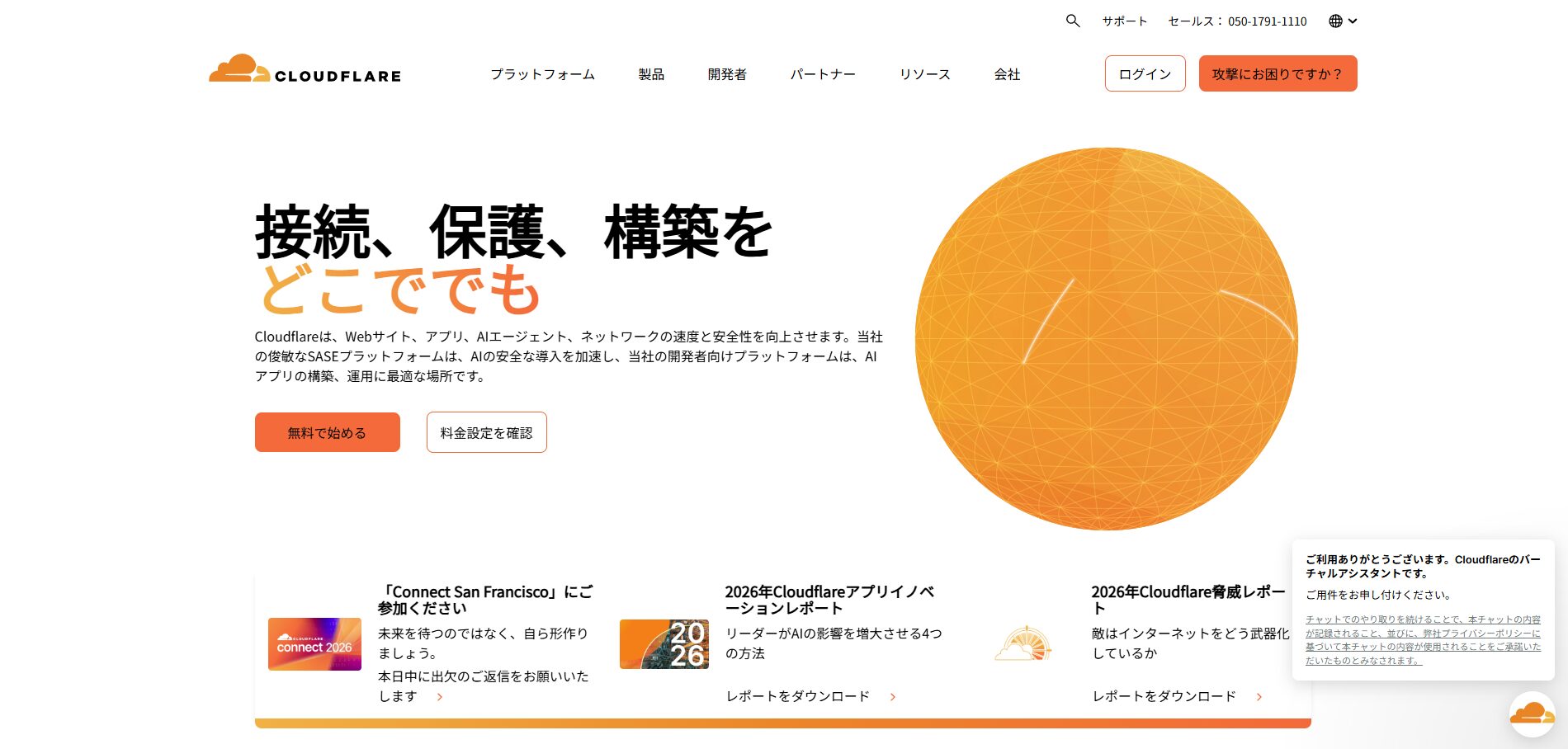 Cloudflareは、Webサイトの表示を速くしたり、安全性を高めたりするためのサービスを提供している企業です。