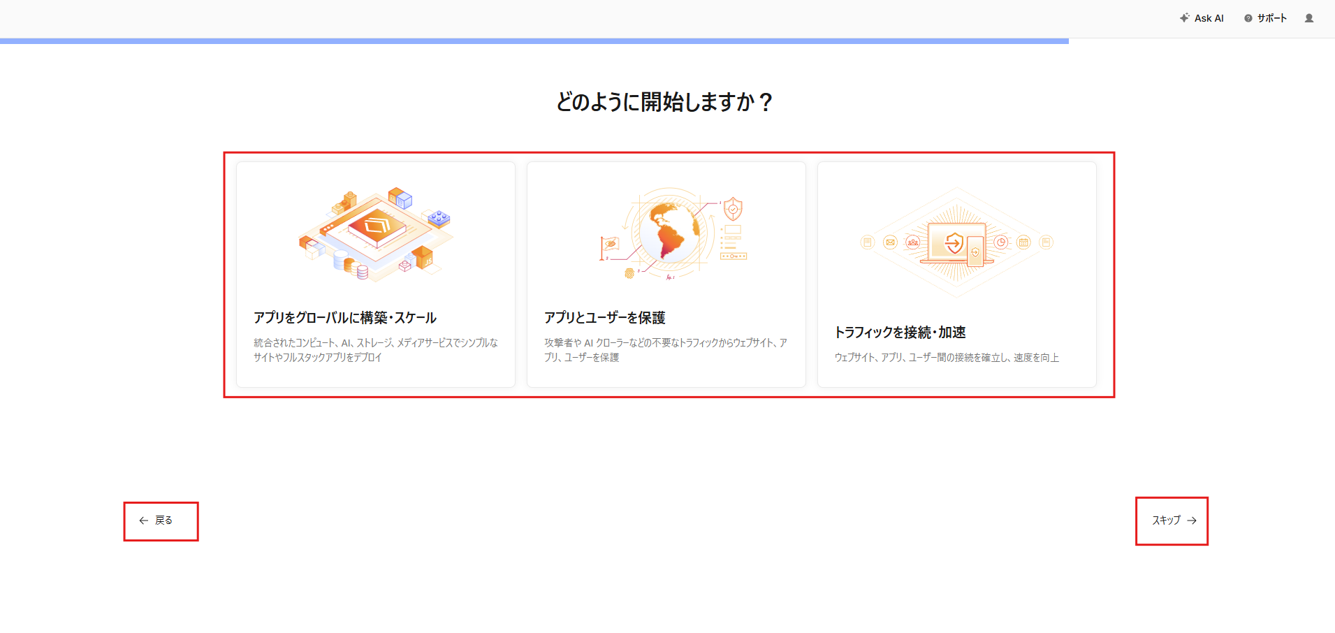 Cloudflareの利用方法を選択する画面が表示された場合、任意の選択肢を選ぶ