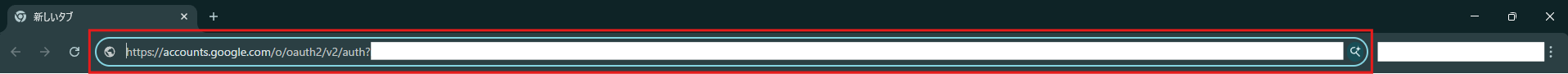 - Googleでログインするための認証画面URLが表示されるため、URLをコピー&ペーストし、ブラウザのアドレスバーに入力後、「Enter」キーを押す