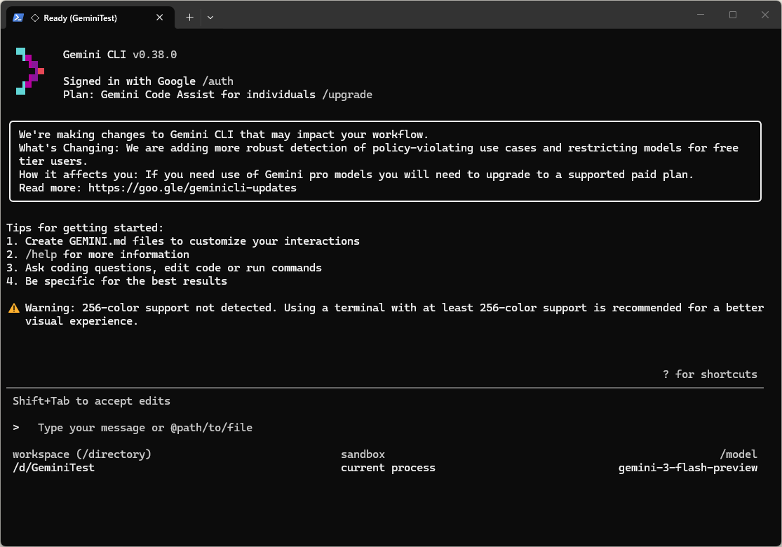⚠ Warning: 256-color support not detected. Using a terminal with at least 256-color support is recommended for a better