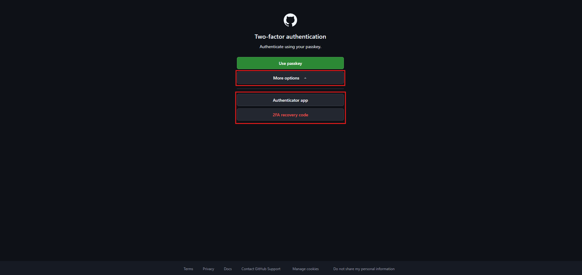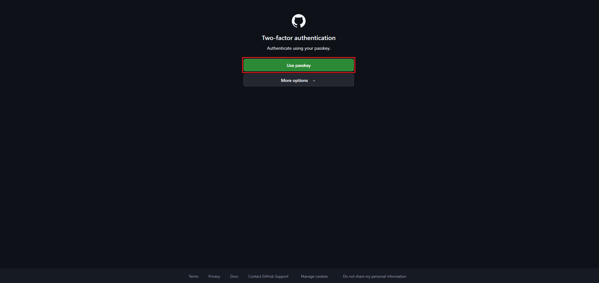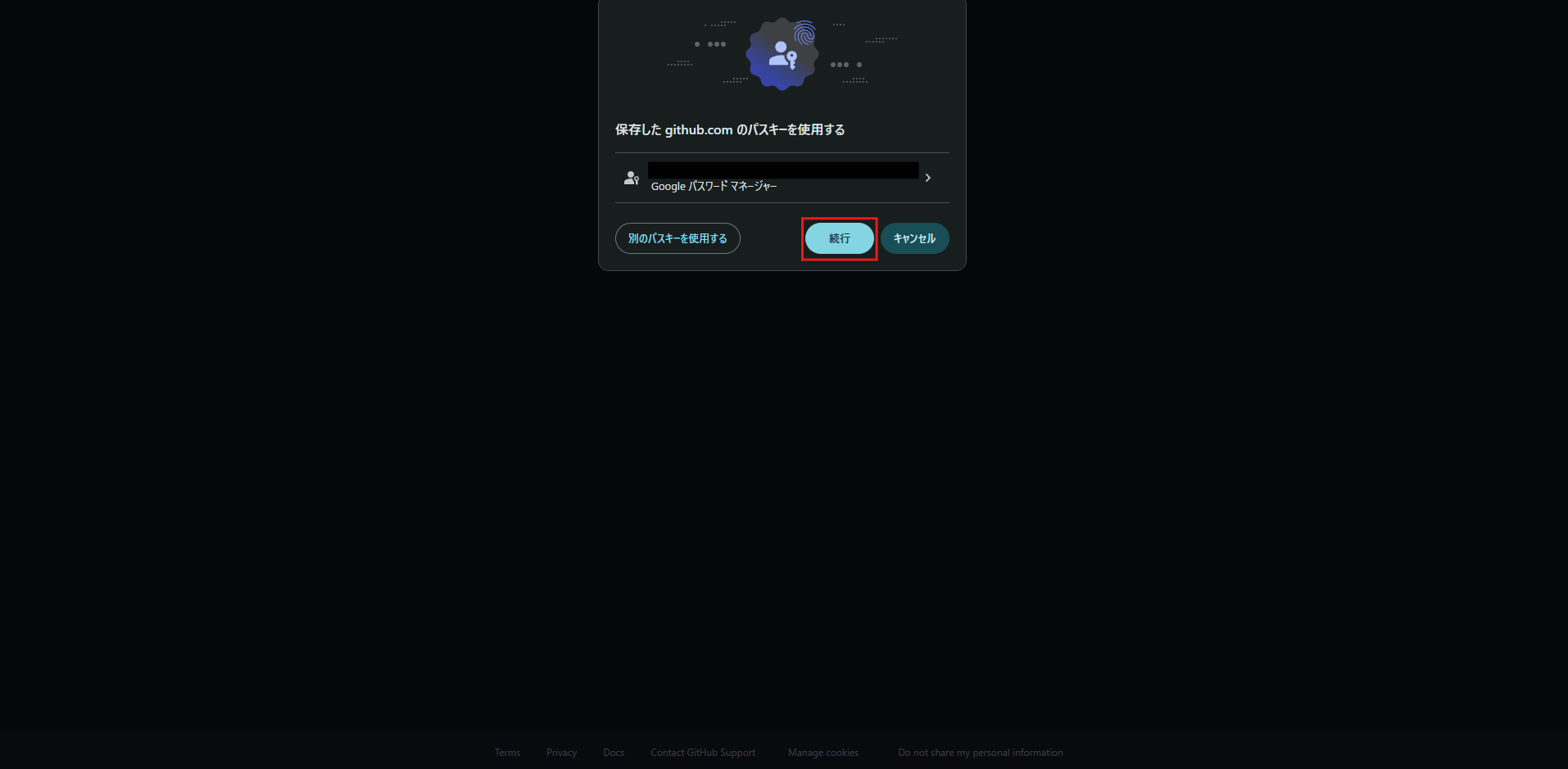 「Use passkey」ボタンを押す