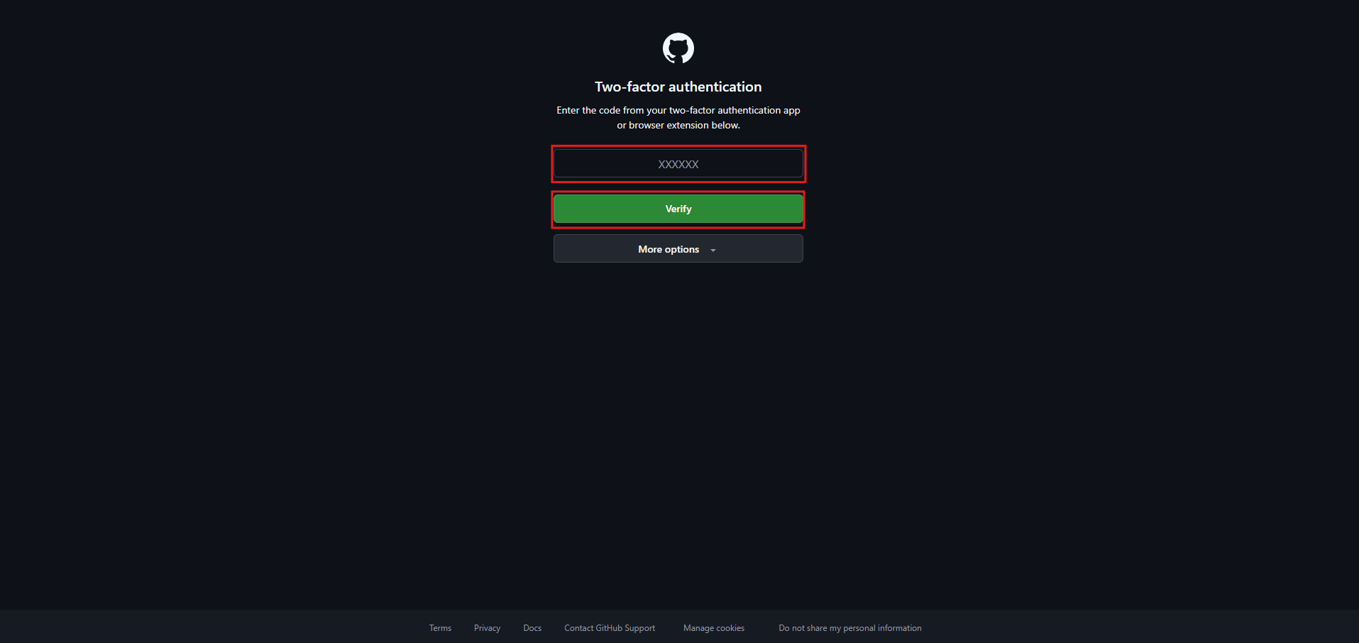 認証アプリに表示されている対象のGitHubアカウントの認証コードを入力し、「Verify(検証する)」ボタンを押す
