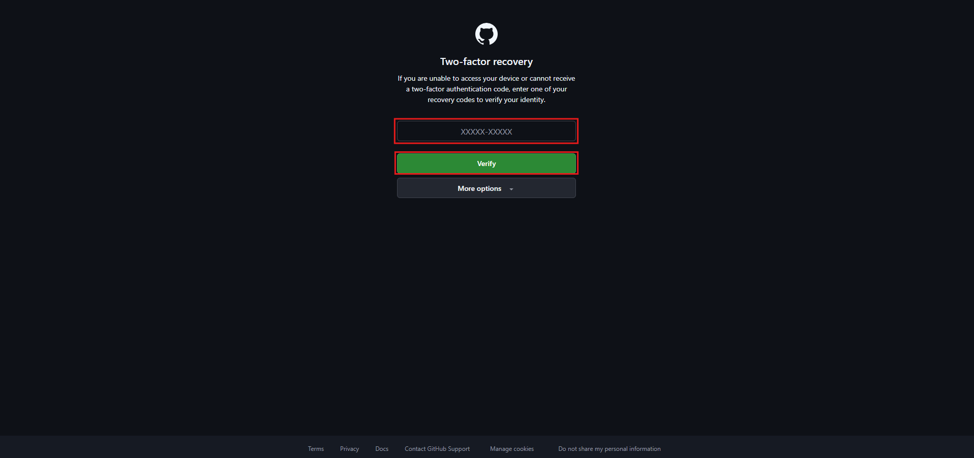 復旧コードを入力し、「Verify(検証する)」ボタンを押す