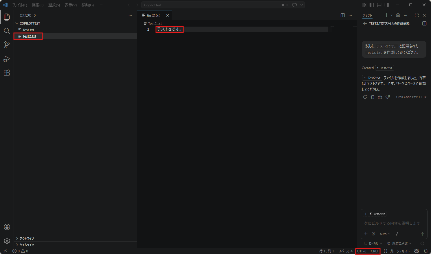 - Visual Studio CodeのGitHub Copilot Chatに指示(プロンプト)を試し打ちする