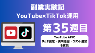 【副業実験記|YouTube×TikTok運用 第35週目】YouTube APIでサムネ設定・説明追記・コメント追加を実現