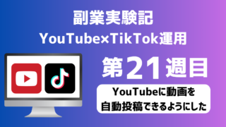 副業実験記【副業実験記|YouTube×TikTok運用 第21週目】YouTubeに動画を自動投稿できるようにした つづき。※この記事は当時を振り返って作成した記録です。はじめにYouTubeとTikTokで雑学動画を自動生成・投稿する取り組みも、21週目を迎えました。この週の数字と気づきをまとめておきます。今週の結果YouTube総再生回数: 11,6... 2025-10-15 2026-01-13副業実験記